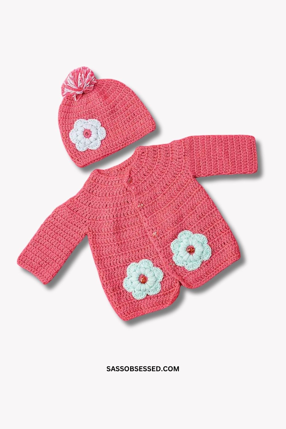 Home Shop for Baby Sweater and Sets Hand Knitted Baby Sweater and Cap in Pink